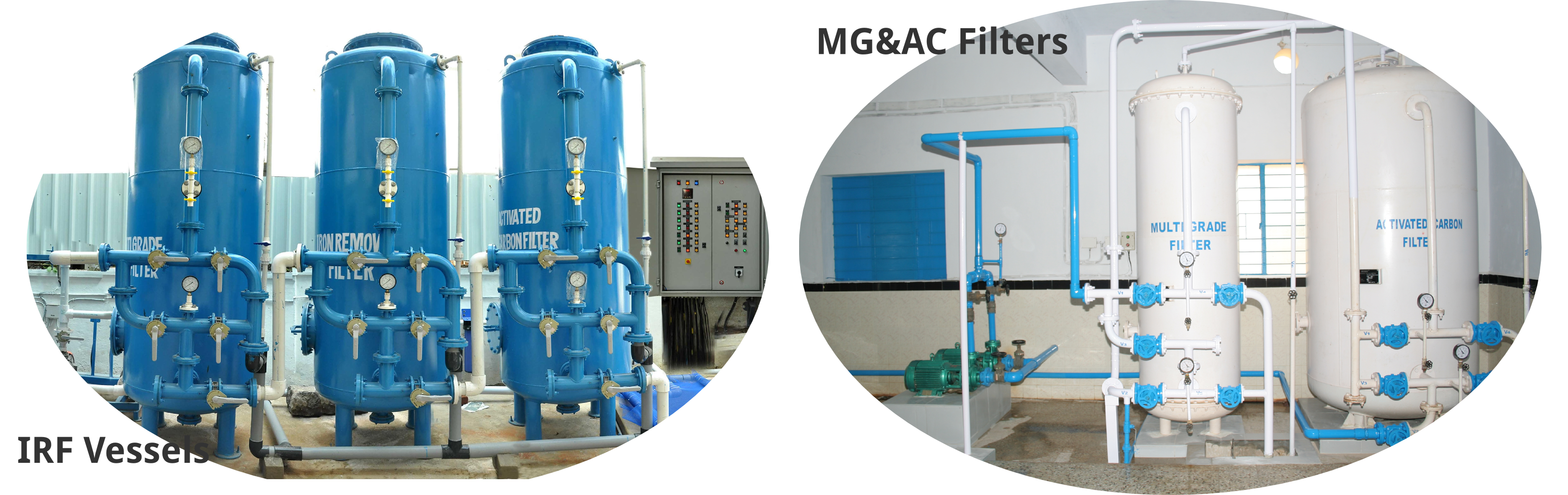 Multi Grade Filter: For removal of suspended particles up to 100 micron. This is a pressurized vessel consisting of sand media for the removal of suspended solids. The unit should be backwashed whenever pressure drop exceeds 0.8 kg/cm2.